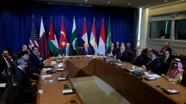 وشدّد ترامب على أهمية دور الملوك والزعماء العرب في تنفيذ الخطة، وشكرهم، ومنهم السعودية وقطر والأردن وغيرها.
